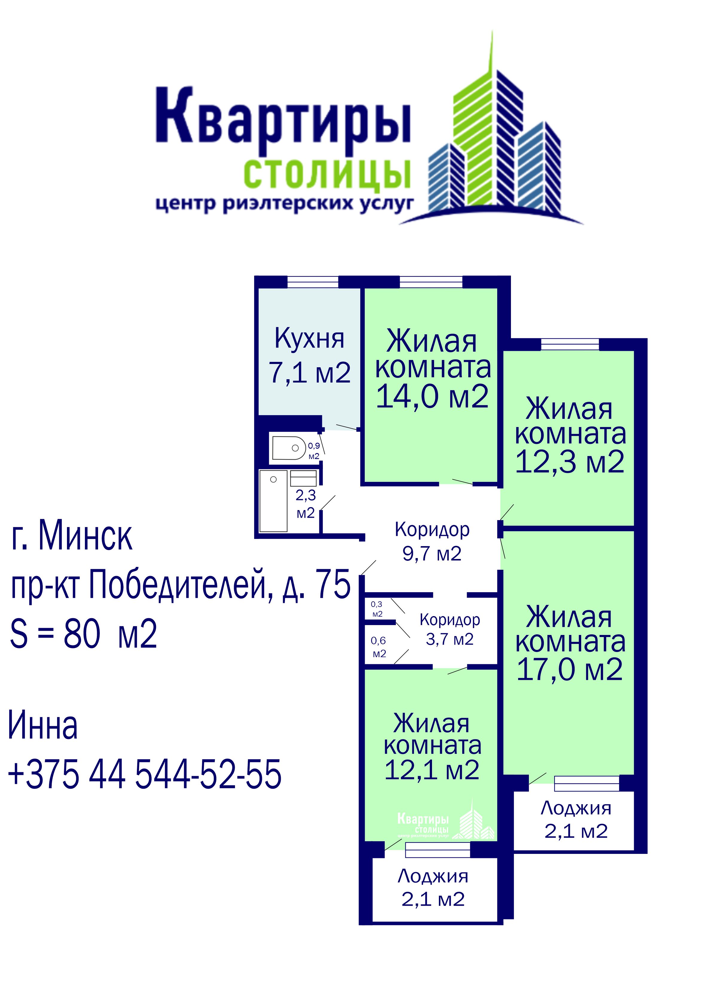 Обменяем эту квартиру на однокомнатную с доплатой или поможем продать Вашу для покупки этого варианта.