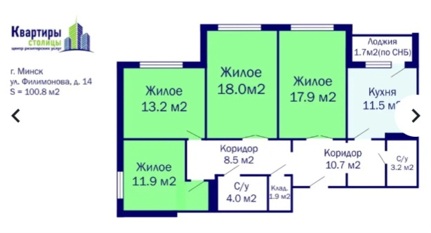 Продаётся просторная четырёхкомнатная квартира на проспекте Победителей 1-ая линия!