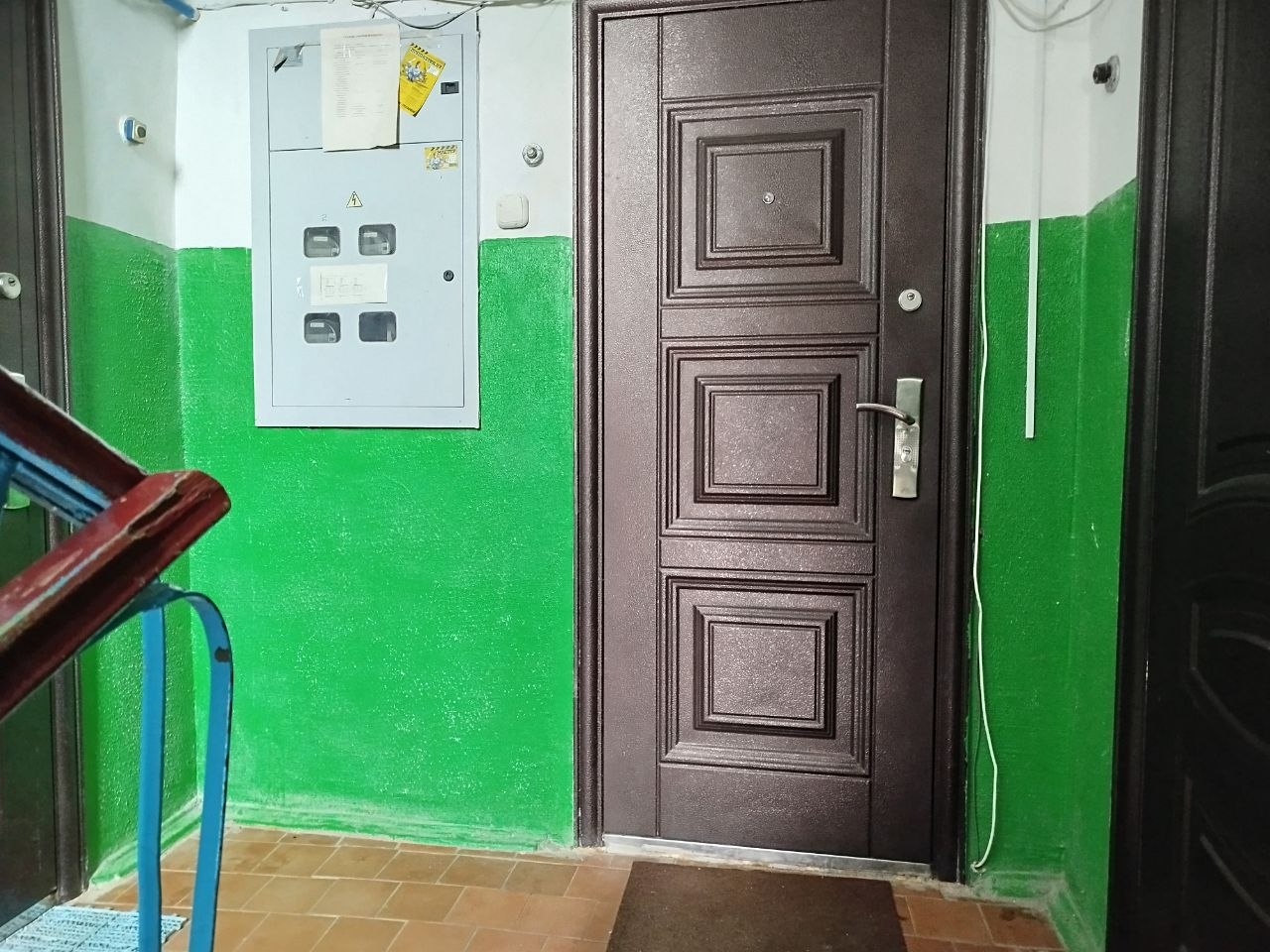 В оконных проёмах и на балконе установлены стеклопакеты. Металлическая входная дверь. Зелёный двор с детской площадкой. Достаточно места для парковки.