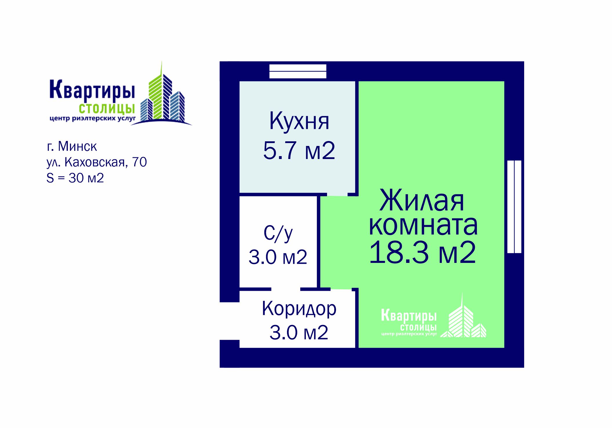 Однокомнатная квартира г. Минск,  ул. Каховская, 70
