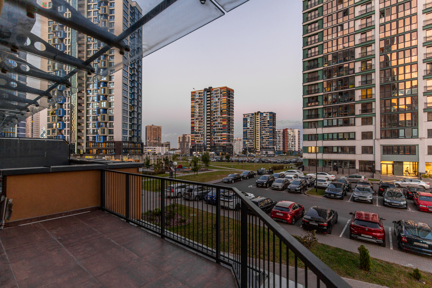 Терраса: визитная карточка нашей квартиры. Пространство площадью 15 м2 и выходом из спальни и детской. Место позволяет установить садовую мебель, электро-мангал и наслаждаться вечерами на своей уютной террасе.