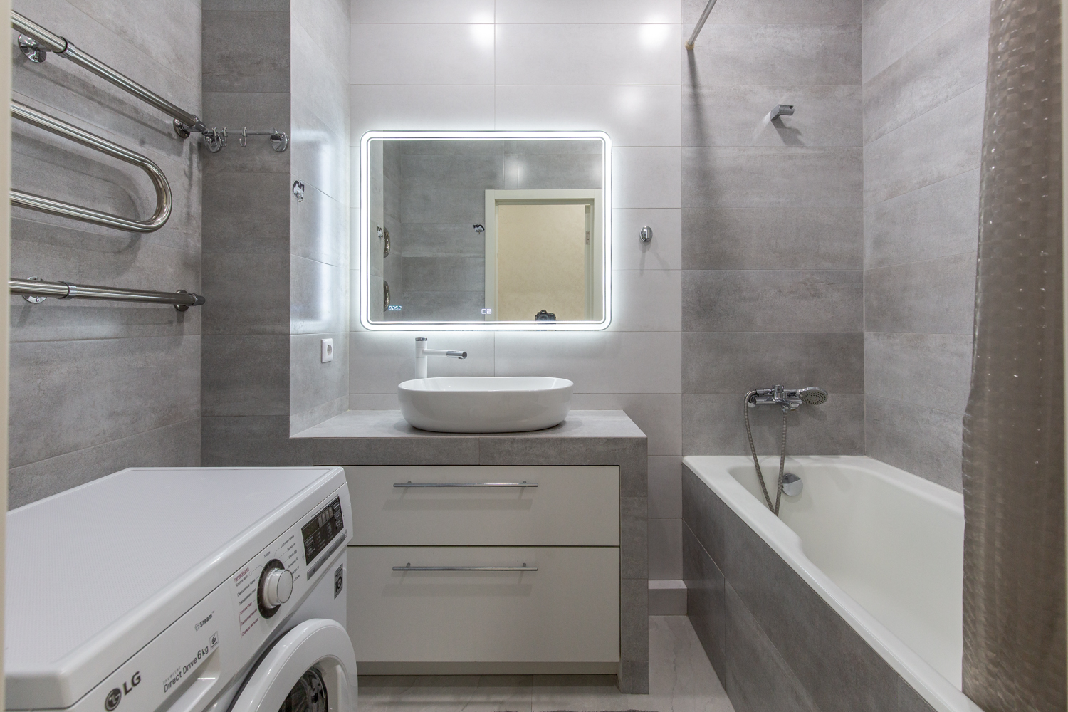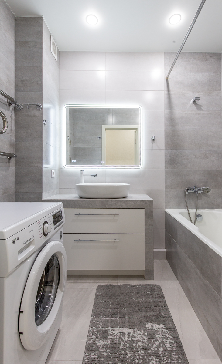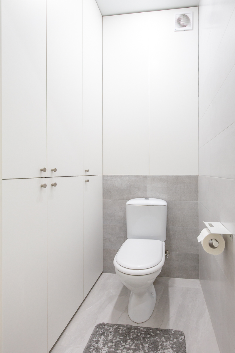 Сан.узел: раздельный. В современной плитке. В ванной комнате имеются места для хранения мелочей, установлена большая ванна, умывальник, стиральная машина. В туалете установлен унитаз и имеется большое количество мест для хранения бытового инвентаря.