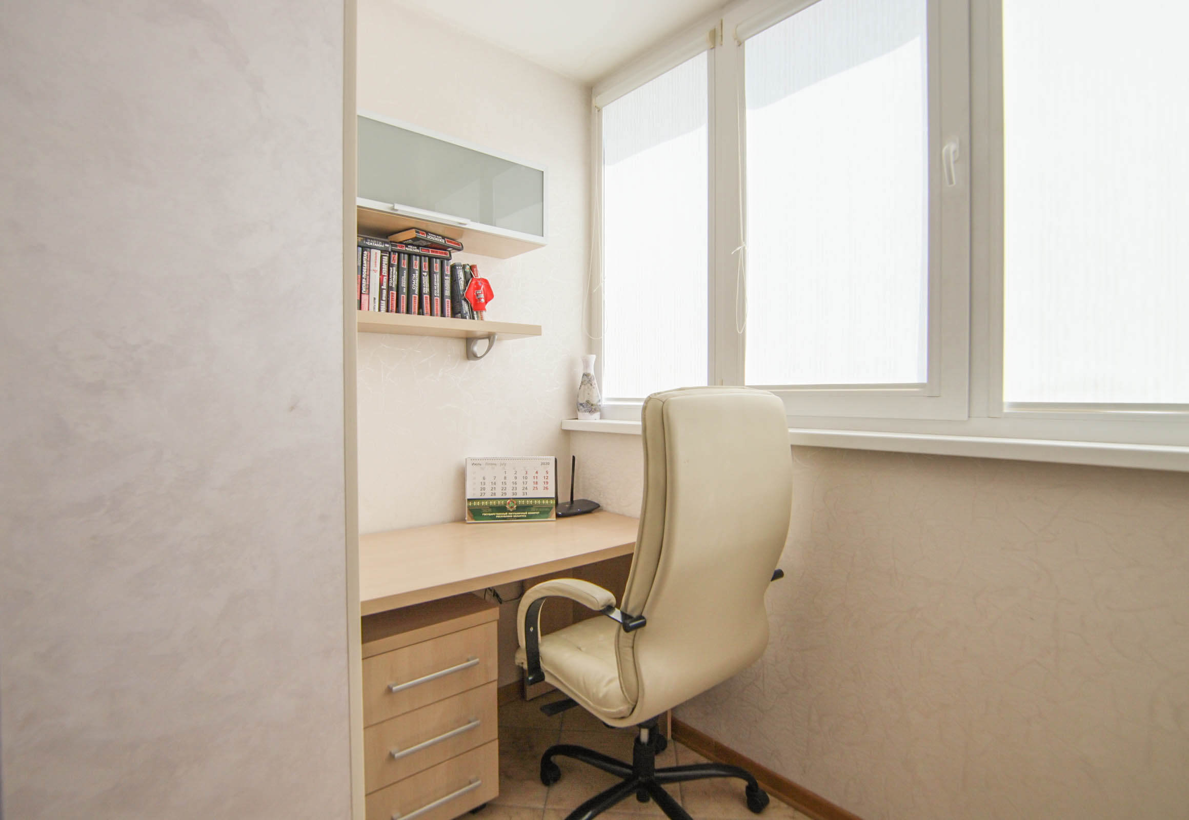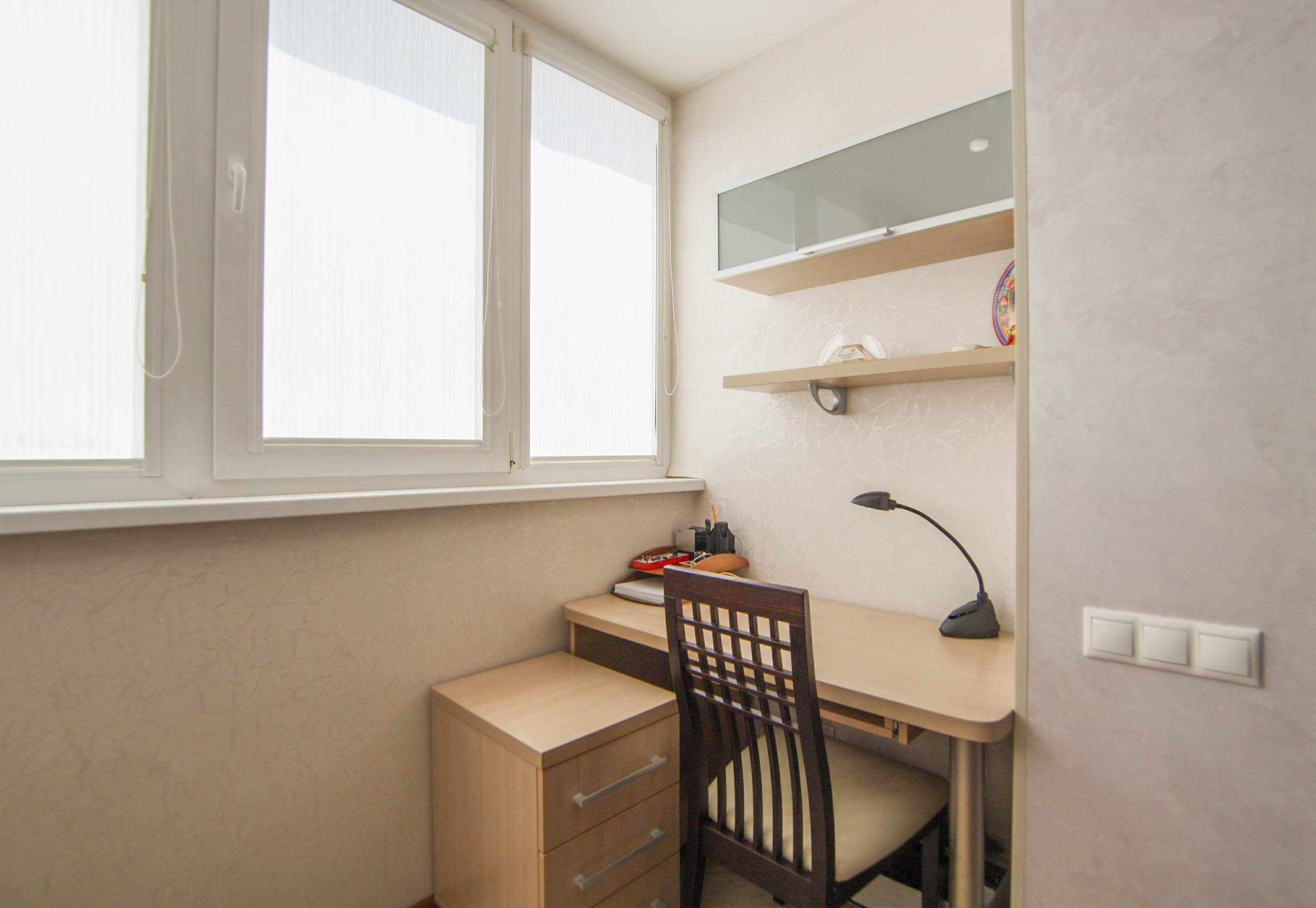 Лоджия из детской – удобно и практично.Площадью 3.1 м2. Оборудована полностью под рабочее пространство.