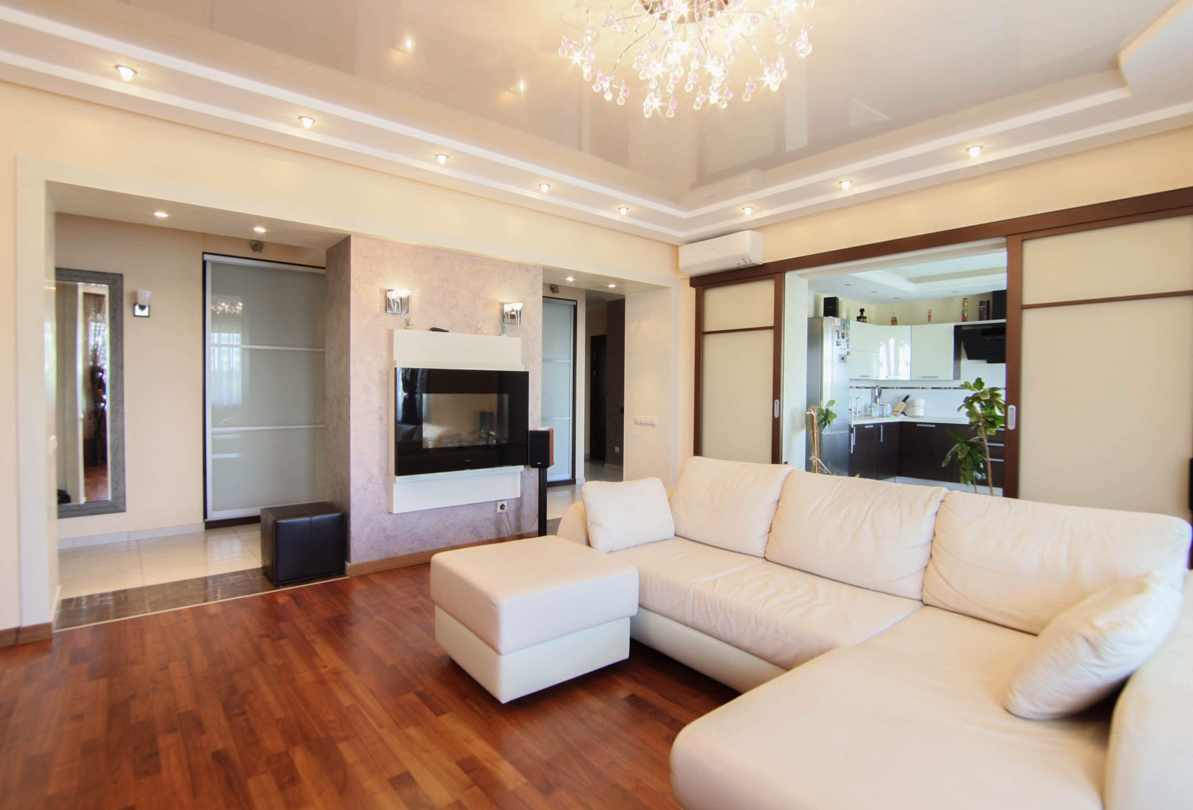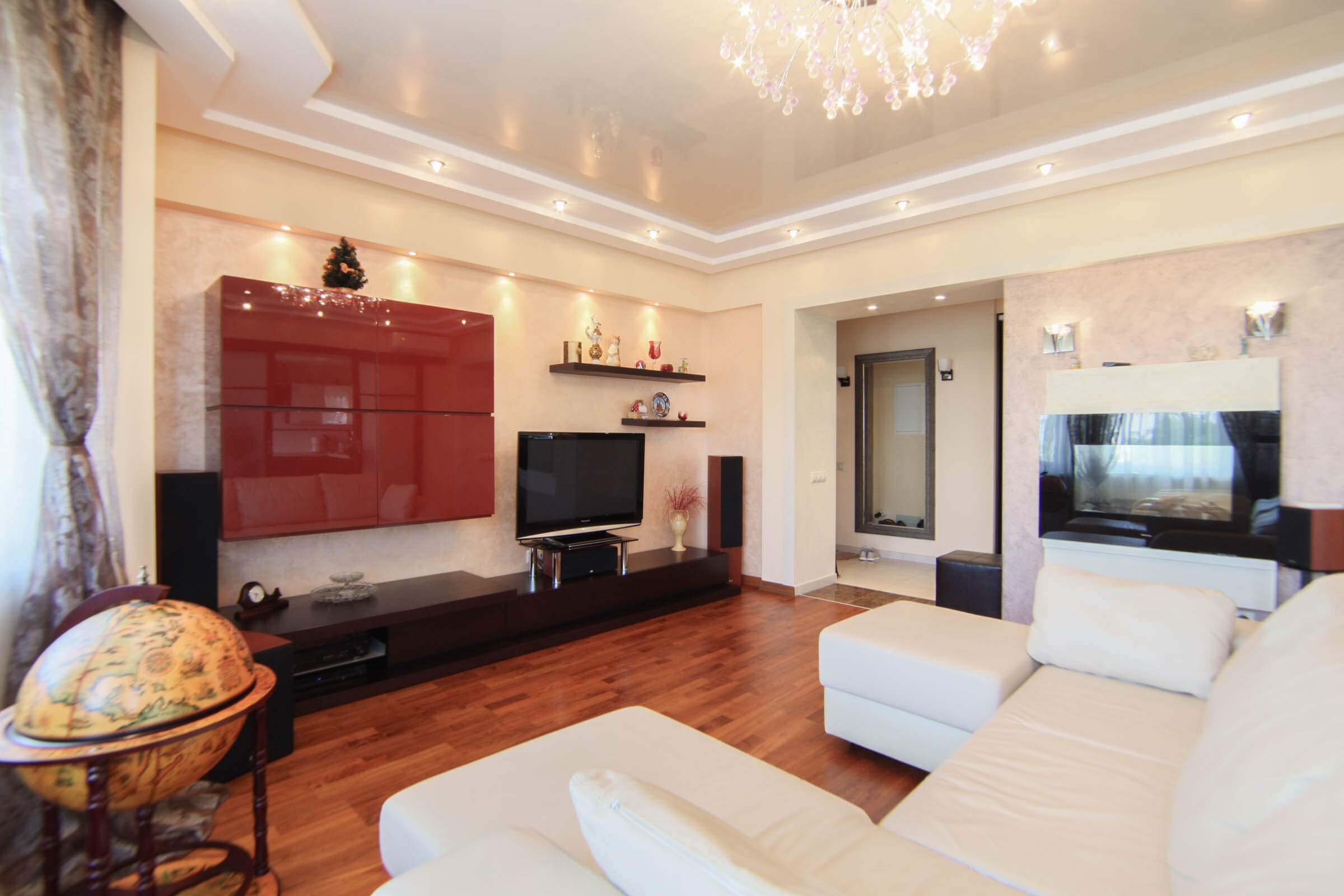 Состояние квартиры: хороший и качественный ремонт. Полностью готова к проживанию. На стенах обои и декоративная штукатурка, на полу паркет, много зон искусственного и естественного освещения.